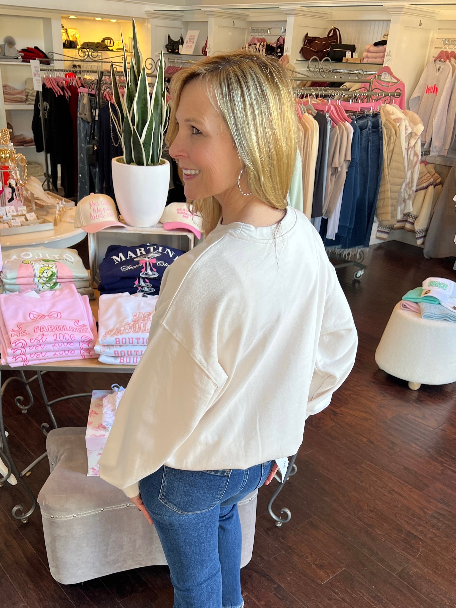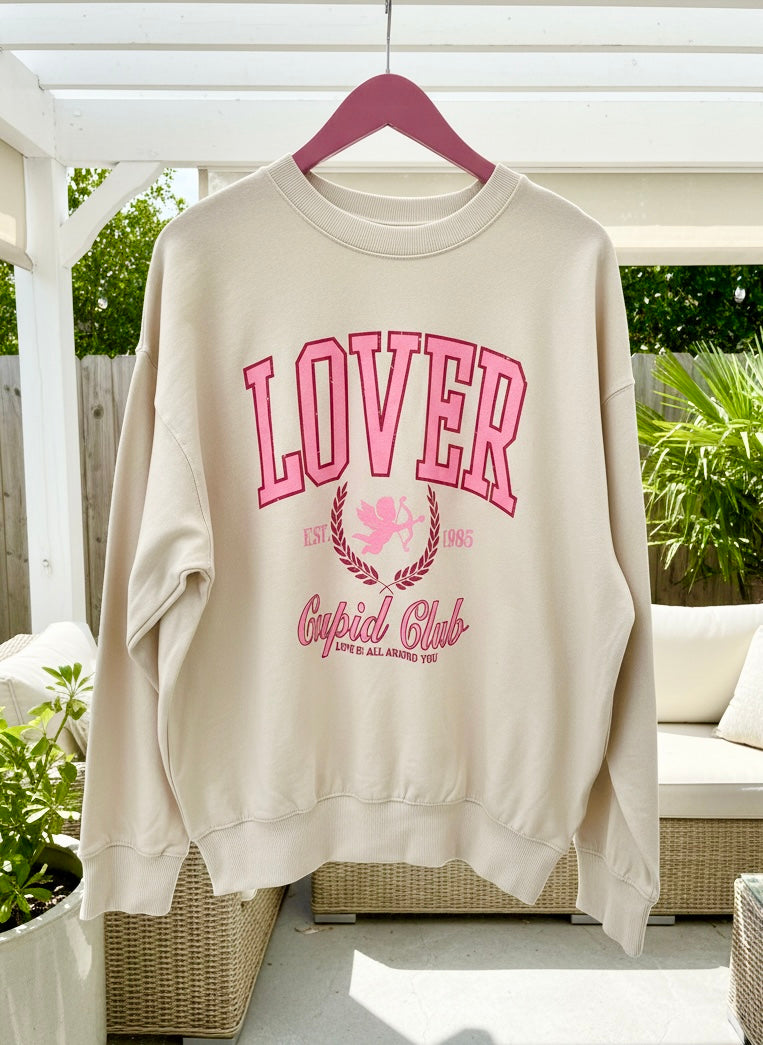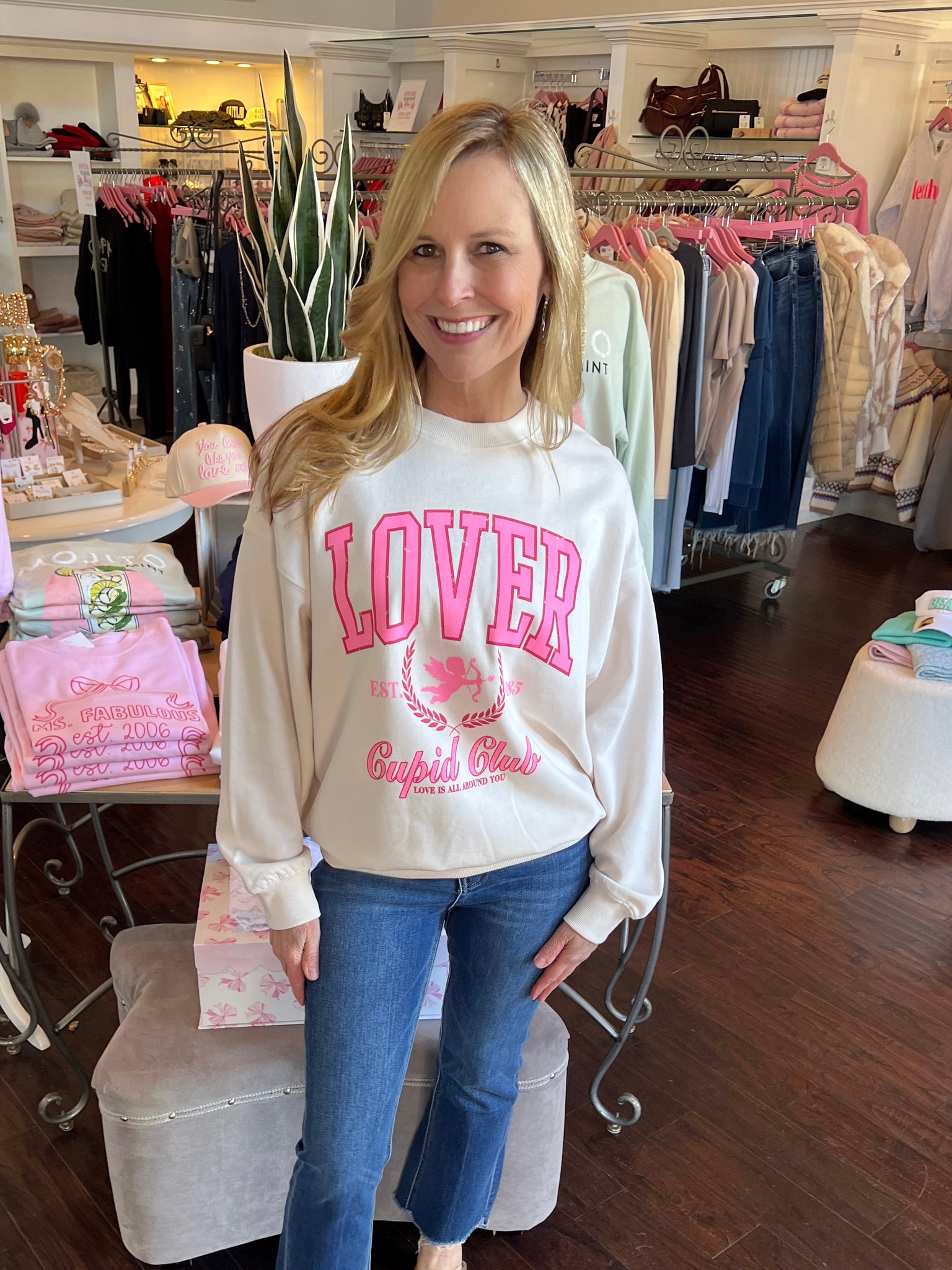 Join the club! Our Lover Cupid Club sweatshirt is adorable with its pink graphics, long sleeve, crew neckline and oversized fit.