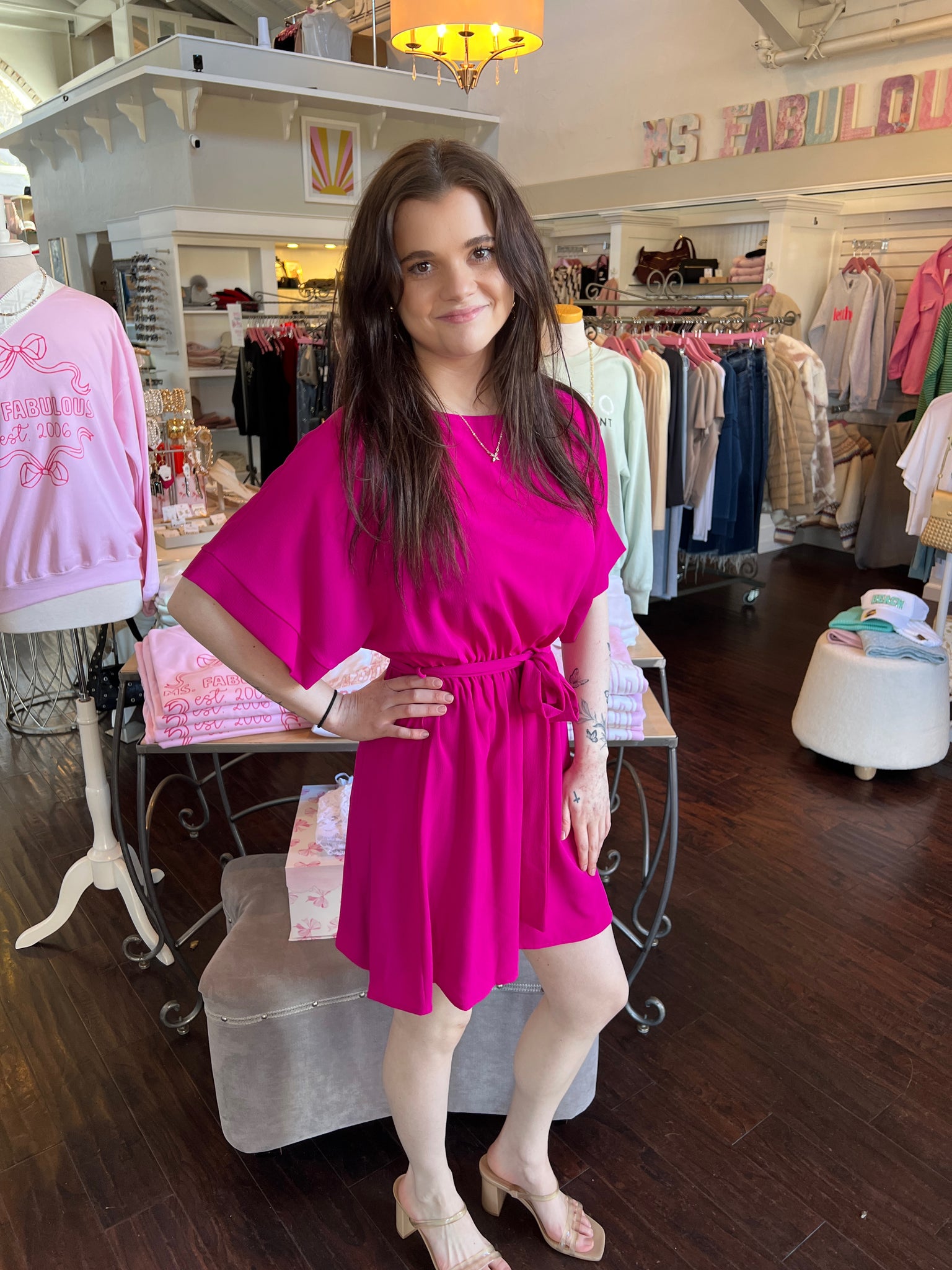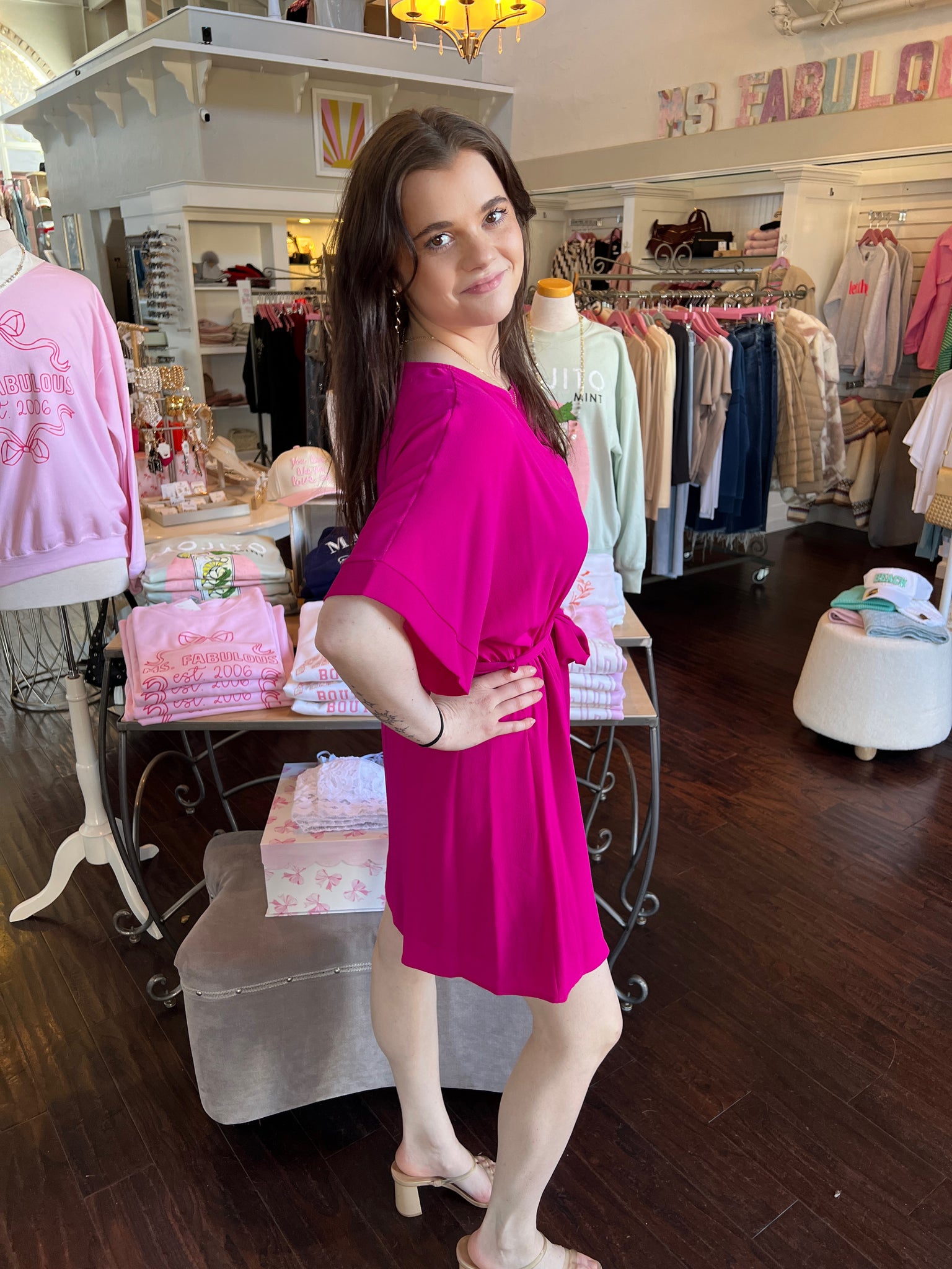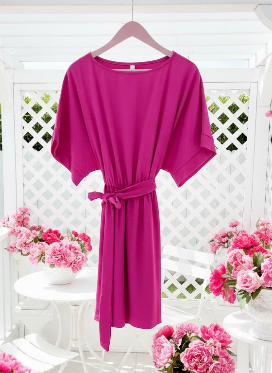 Get vacation vibes all day with our Kimono Mini! This lightweight dress features a flowy kimono sleeves and a flattering mini length. It’s perfect for warm weather and easy styling. Dress it up or down for a chic, effortless look!
