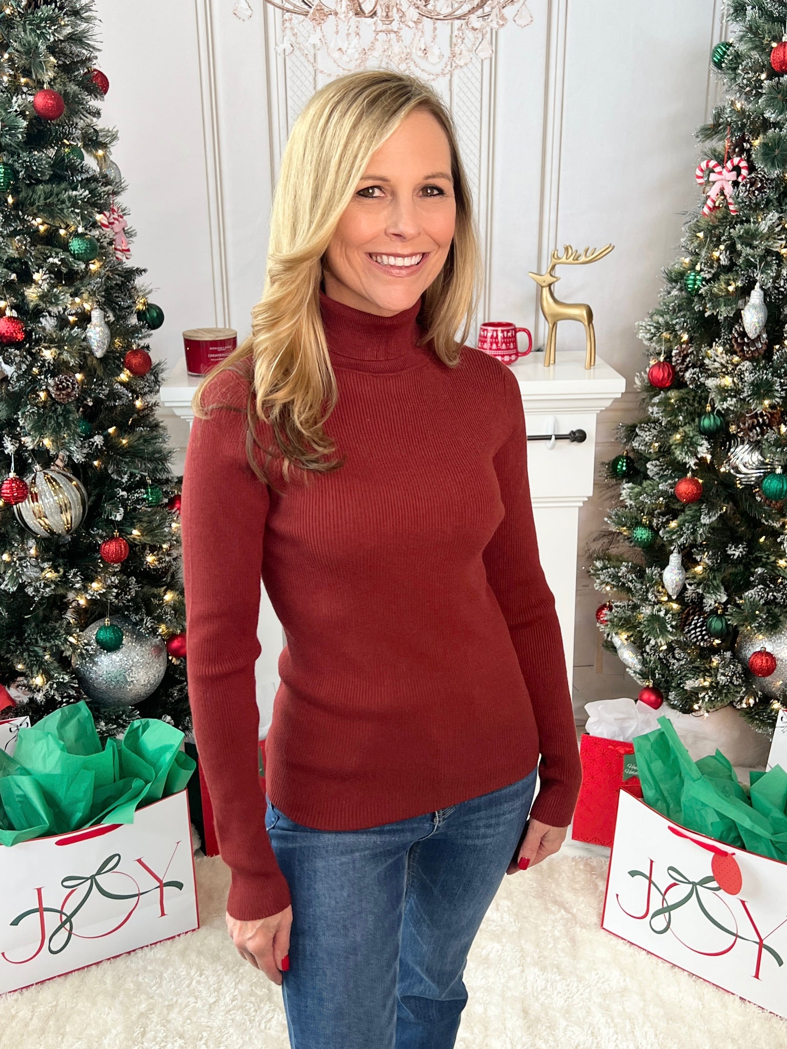 This Ribbed Turtle Basic Top in burgundy is a timeless wardrobe staple with its soft, ribbed fabric and flattering turtleneck design. Its rich, warm hue adds a cozy touch to any outfit, while the long sleeves provide extra comfort for cooler days. Perfect for layering this season!