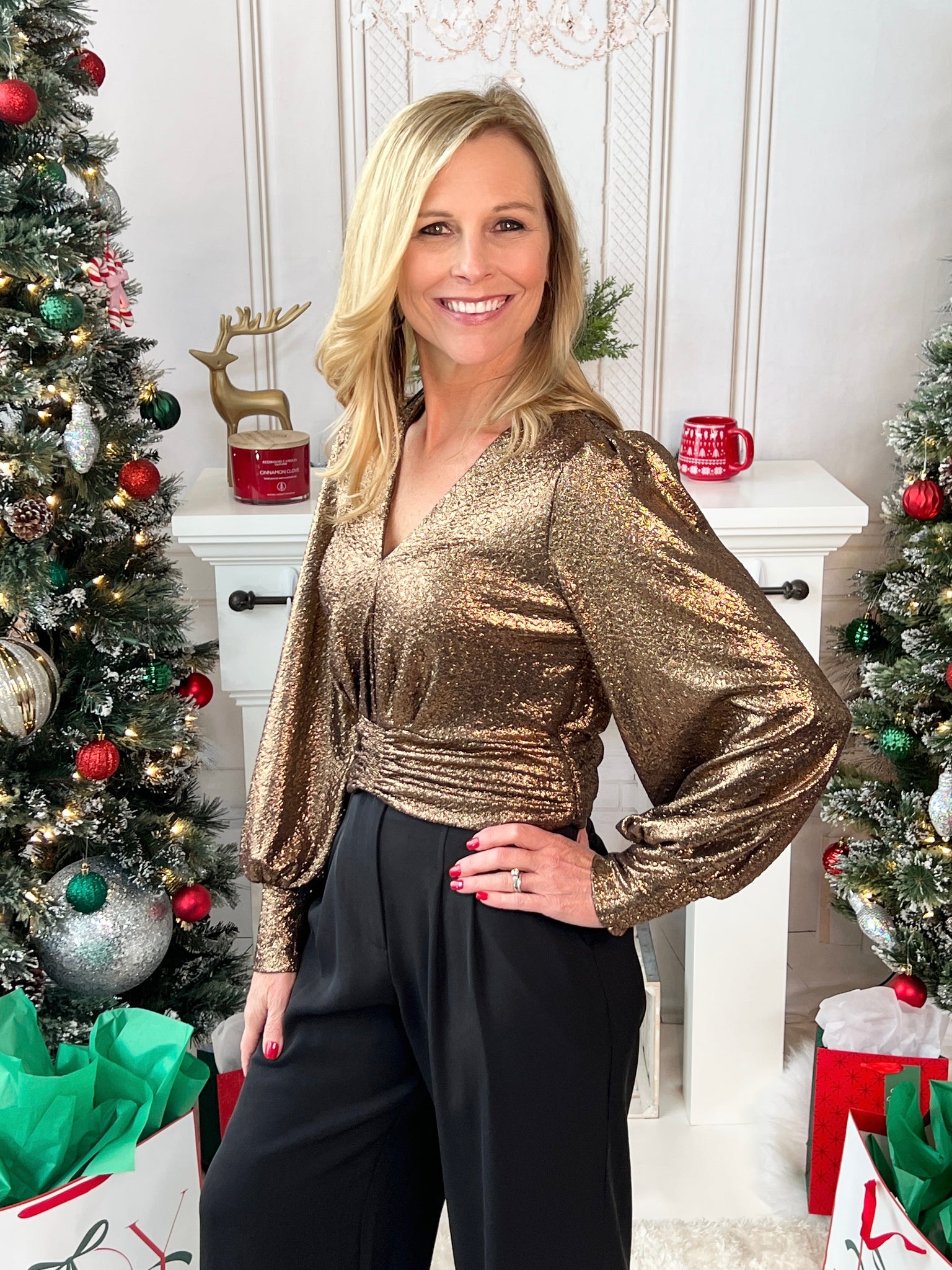 This Textured Foil Print Blouse brings a touch of shimmer and sophistication to your wardrobe with its subtle metallic sheen and unique textured pattern. Featuring a flattering V-neck and gathered waist detail, it’s designed to highlight your silhouette while staying comfortable all day. Perfect for dressing up or adding a bit of sparkle to your everyday look.