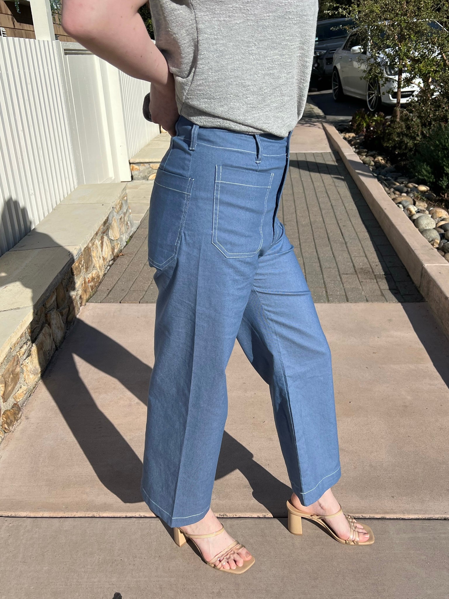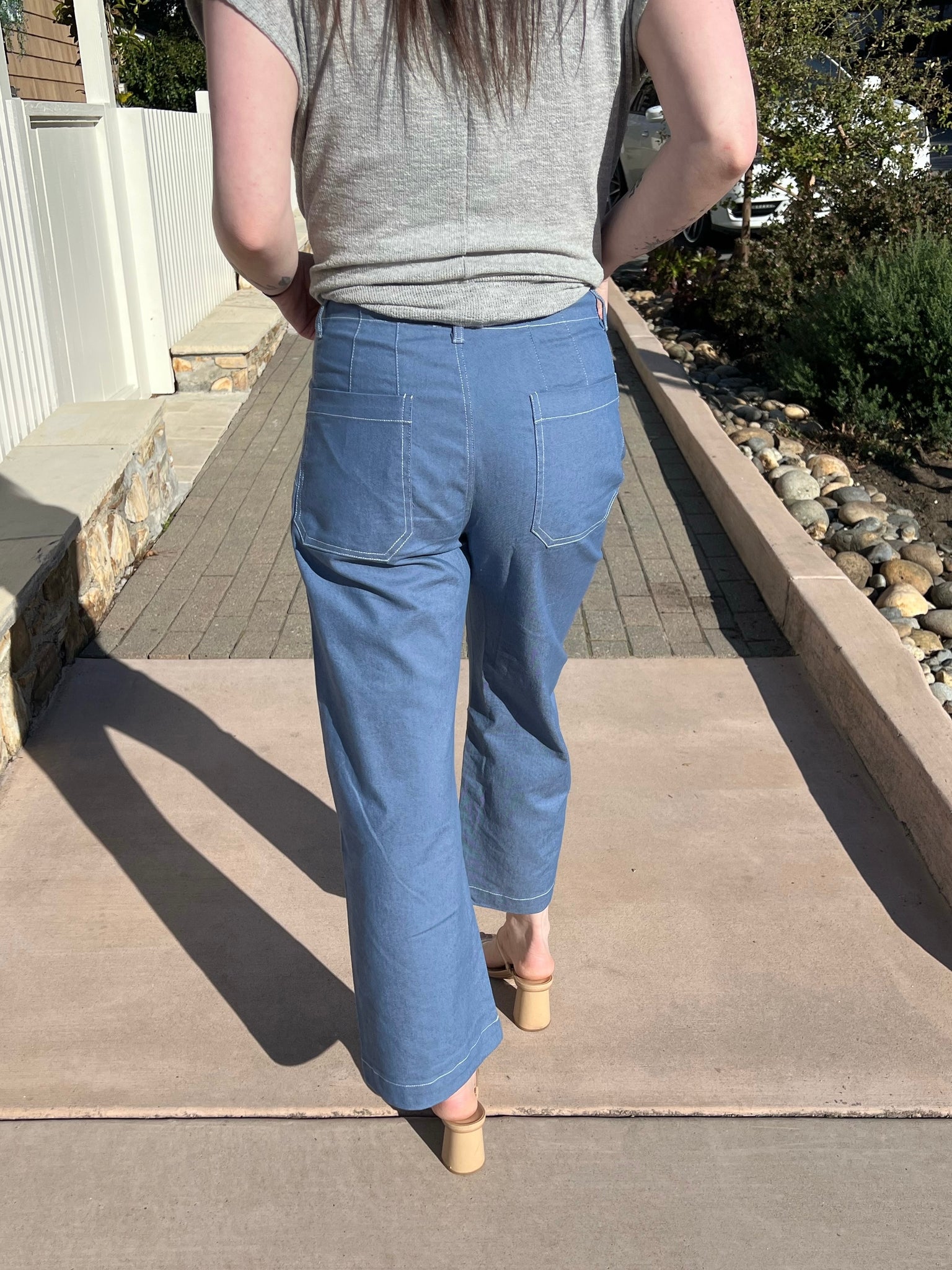 It’s not the destination, it’s the journey, and this pant will take you there in style. Featuring a denim look fabric with just enough stretch to keep you comfortable all day long. The slightly cropped silhouette hits at the perfect spot, while classic button and zipper closure make it an easy wearable choice. The patch pockets have contrasting stitching to add a casual touch. Take these on your next adventure and have the best time!