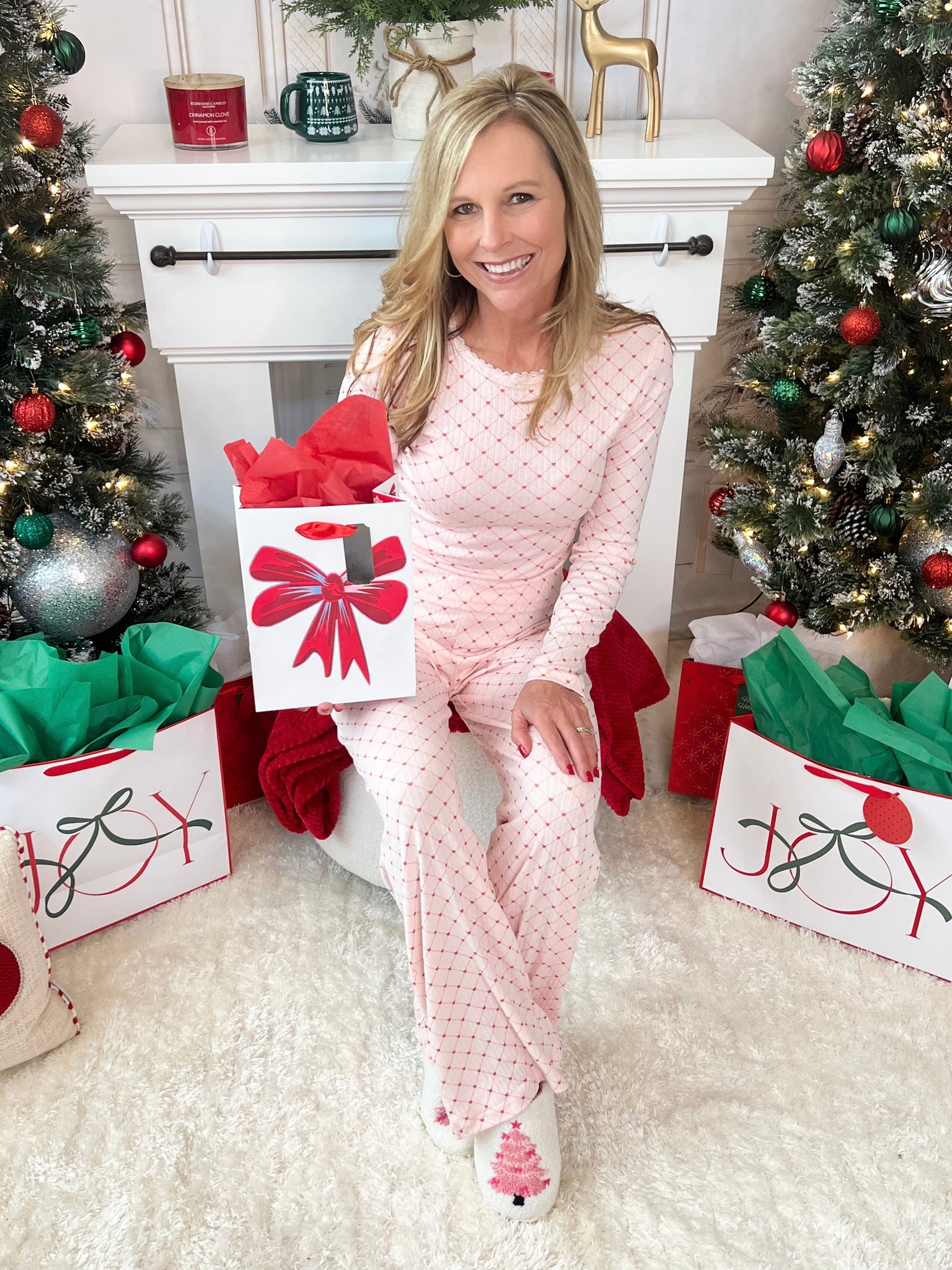 The sweetest sleep set is here! Snuggle into this two piece set with fitted cropped long sleeve top and long pajama pants bottom with elastic waist. The heart print is sweet as can be.