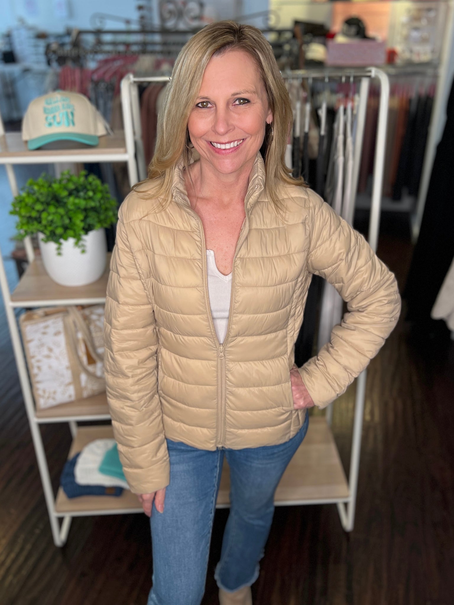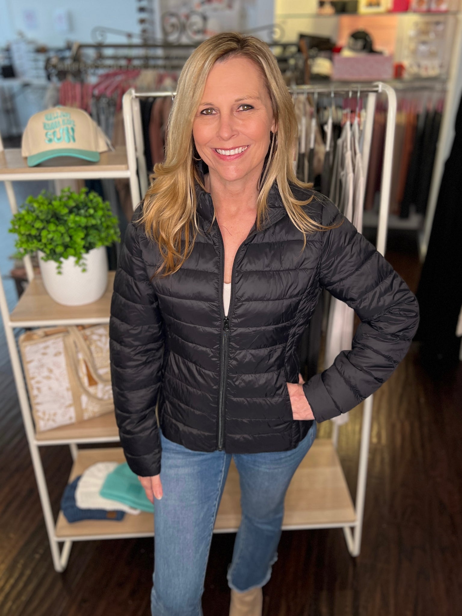 This everyday puffer is a staple. Featuring a light-weight feel with zipper front and side pockets. The packable puffer comes with a pouch for easy travel. Available in 3 colors.