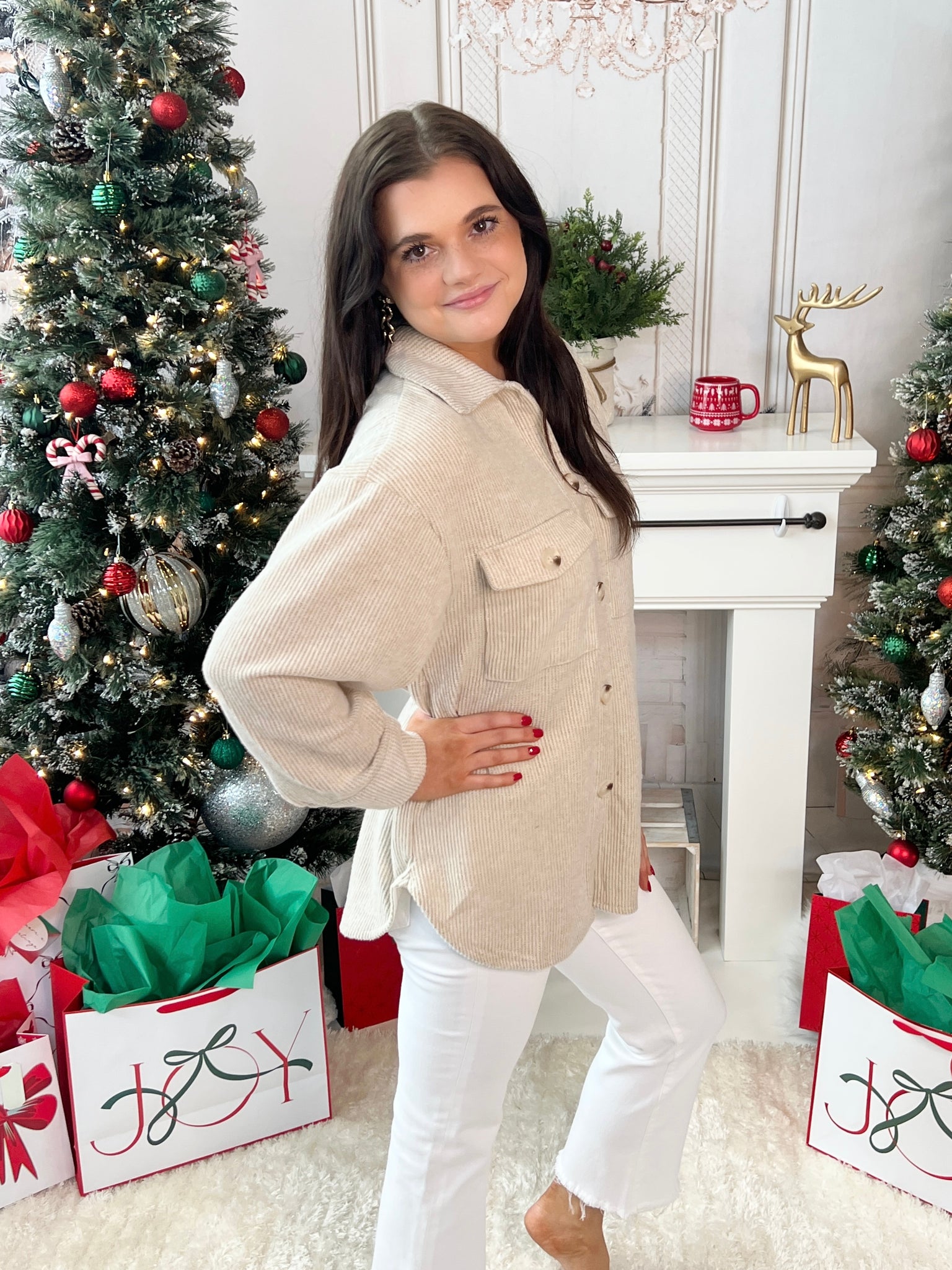 This one is for you! Featuring a delightful soft ribbed fabric with classic collar, button front closure and a curved hem. A great way to pull together a casual look either ease.